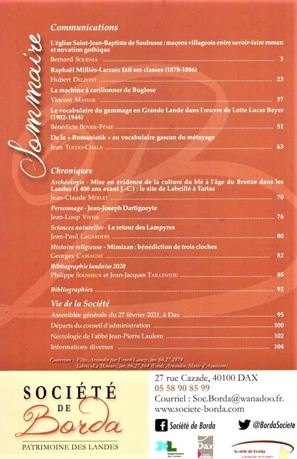 Lo darrèr numero deu Bulletin de la Société de Borda qu’es parexut !
