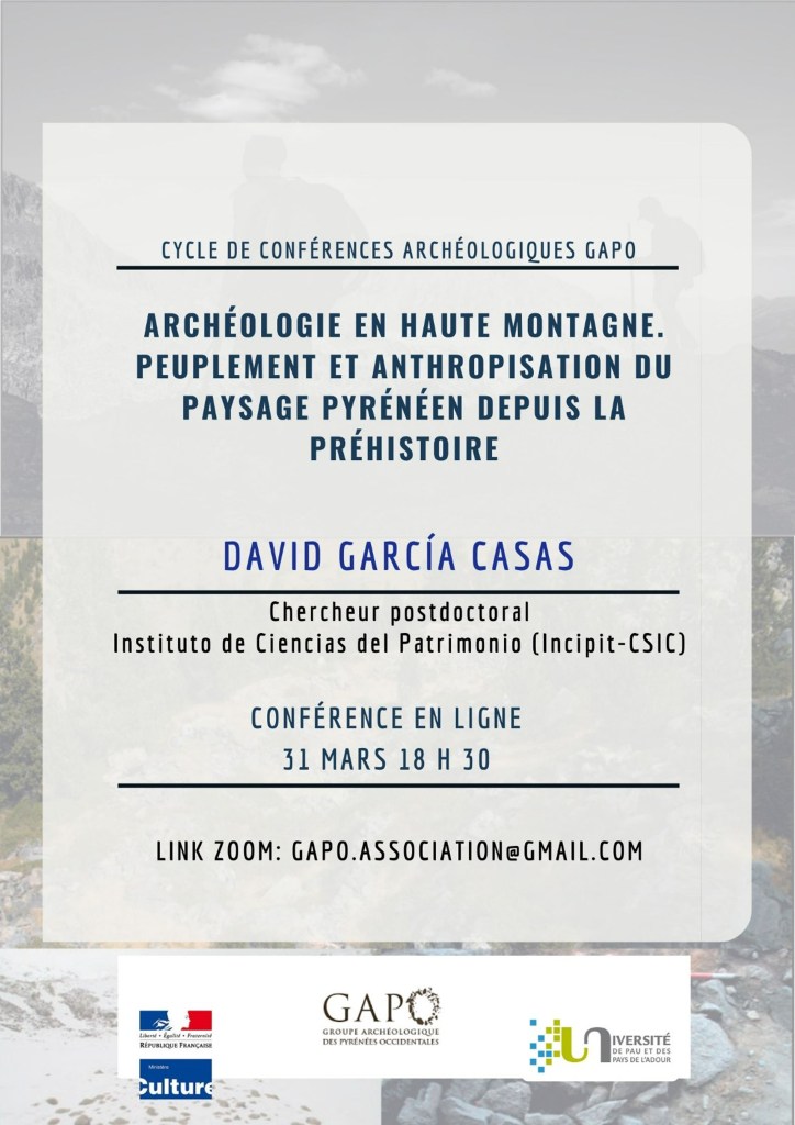 🇫🇷 À ne pas manquer, jeudi 31 mars 2022 à 18h30 : « Archéologie en haute montagne. Peuplement et anthropisation du paysage pyrénéen depuis la Préhistoire », par le GAPO !