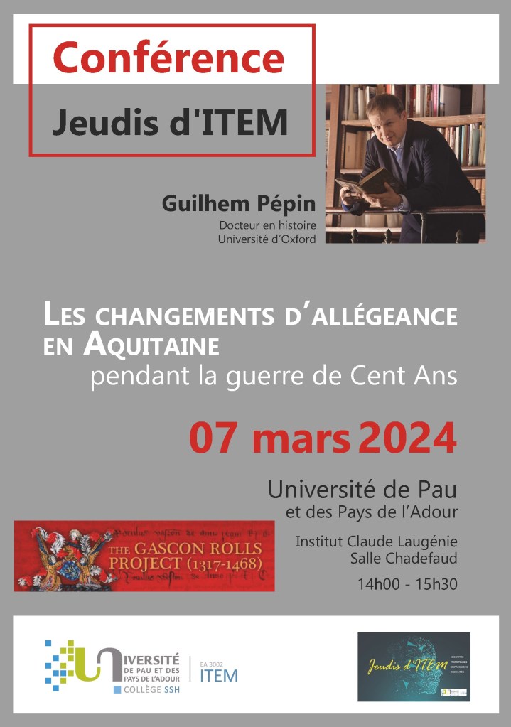 Guilhem Pépin est docteur en histoire de l’Université d’Oxford. Il a travaillé pendant 10 ans à la publication en ligne (2009 à 2020) de résumés détaillés en anglais du contenu des rôles gascons (1317-1467), la source principale de l’Aquitaine-Gascogne des rois d’Angleterre. Ce travail est d’ailleurs en libre accès.