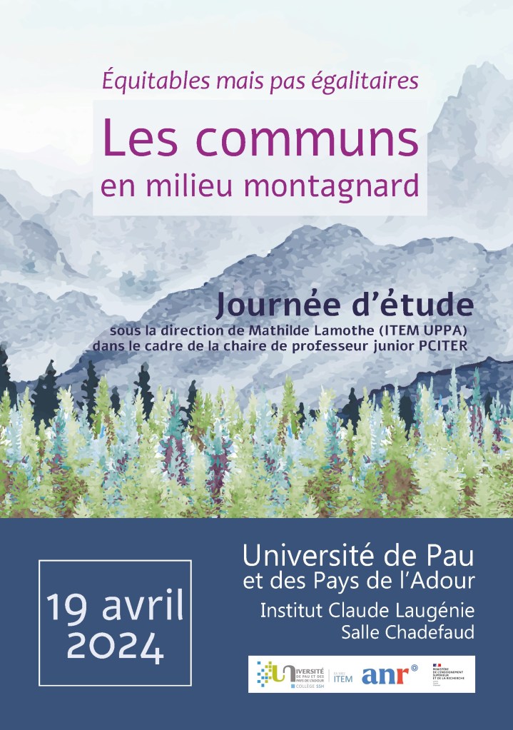 Nous souhaitons établir une forme d’état de l’art de la question des communs environnementaux en milieu montagnard qui sera présentée lors de la journée d’étude du vendredi 19 avril aux étudiants du master Histoire, Civilisations et Patrimoine de l’UPPA.