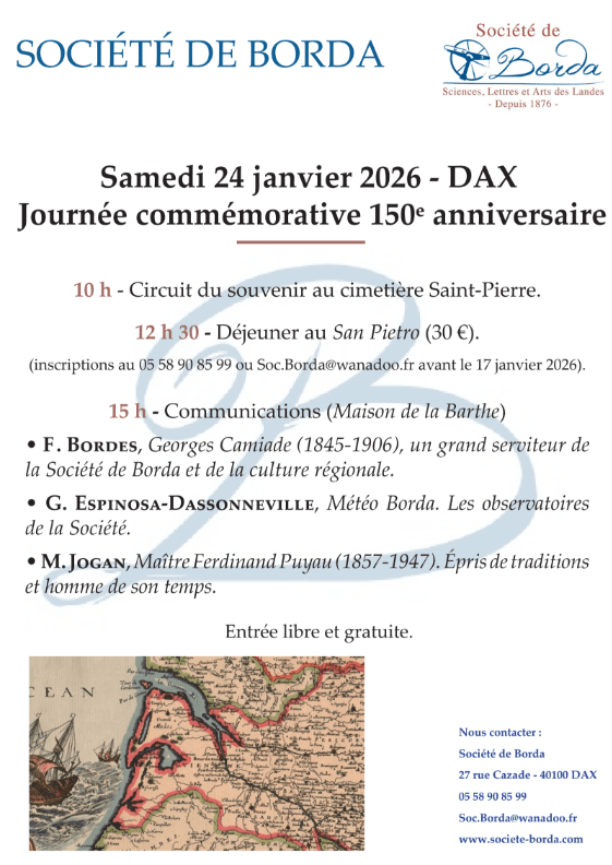 150 ans Observatorigascon14 janvier 20269 janvier 2026histoire Navigation des articles Précédent Société de Borda + d’infos 📅 24 janvier 2026 📍 Dax 🎂 Partager : Cliquer pour partager sur X(ouvre dans une nouvelle fenêtre) X Cliquez pour partager sur Facebook(ouvre dans une nouvelle fenêtre) Facebook Plus Cliquer pour imprimer(ouvre dans une nouvelle fenêtre) Imprimer Cliquer pour envoyer un lien par e-mail à un ami(ouvre dans une nouvelle fenêtre) E-mail