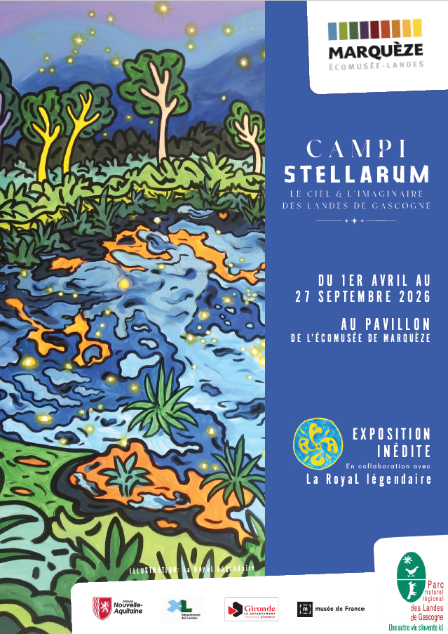 Cette saison, l’Écomusée de Marquèze et le collectif La RoyaL légendaire se sont associés pour vous proposer une expo inédite sur le thème du ciel étoilé et l’imaginaire auquel il renvoie dans les Landes de Gascogne.