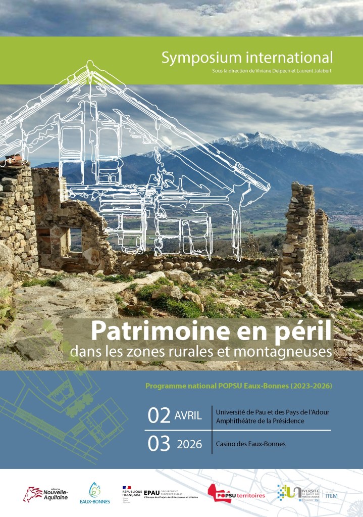 À la croisée de l’histoire de l’art et de l’architecture, de l’histoire sociale et culturelle et de l’aménagement territorial, cette manifestation interroge la problématique du patrimoine menacé de disparition au cœur d’un environnement caractérisé par de faibles peuplements humains et l’omniprésence de la nature. Le patrimoine architectural et paysager est ici abordé dans sa richesse et sa diversité typologique (cultuelle, militaire, thermale et climatique, agropastorale) aussi bien par l’observation de son état matériel et de ses dégradations que par les actions de conservation, de sauvegarde et de valorisation mises en œuvre au sein des territoires ruraux et montagneux, grands espaces naturels animés par leur logique propre et se trouvant particulièrement concernés par les enjeux sociétaux et environnementaux du changement climatique. Les chercheurs, issus de diverses disciplines (histoire de l’art, architecture, histoire, archéologie, droit, conservation du patrimoine), mais aussi institutions et acteurs socioéconomiques, en partagent leurs analyses spécifiques et complémentaires pour décrypter les processus de patrimonialisation et leur lien avec le territoire et les identités culturelles, de même que le rapport entre la conservation matérielle du patrimoine et un milieu marqué par de fortes contraintes environnementales.