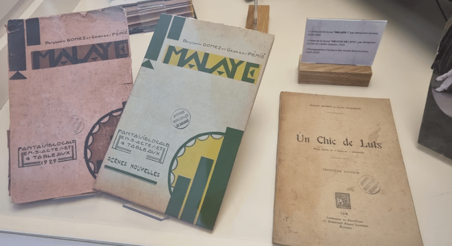 « Au parat deu centenari de l’Academia Gascona de Baiona, dinc au 31 de mai, documents inedits provienent deus archius de l’institucion que son expausats au Centre d’interpretacion de l’arquitectura e deu patrimòni (CIAP), nommat Lapurdum, 7 Carrèra deus Governadors. A véder sustot : l’edicion de las faulas de La Fontaine (1776), e la traduccion de l’album de tintin « Las Jòias de la Castafiòra ». Visitas deu dimars au divés de 14h a 18h e lo dissabte enter 10h e 12h30. »