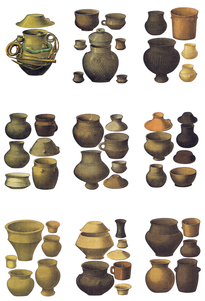 Parmi celles-ci, la poterie tenait une place des plus importantes, car indispensable à la fabrication de divers contenants (pots à cuire, jattes, jarres de conservation, faisselles, gobelets) et d’objets spécialisés comme les fusaïoles et les pesons (utilisés dans le cadre de l’artisanat textile) ou les moules destinés à la métallurgie du bronze.