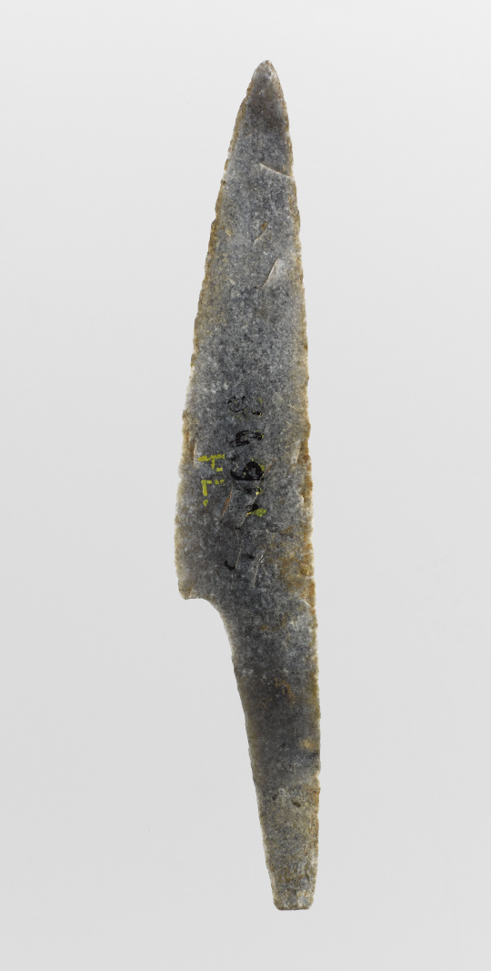 1 : outil biseauté. 2 : fragment de bâton percé. 3 : fragment d’outil mousse. 4, 5, 6 : fragments de pointes de projectile.