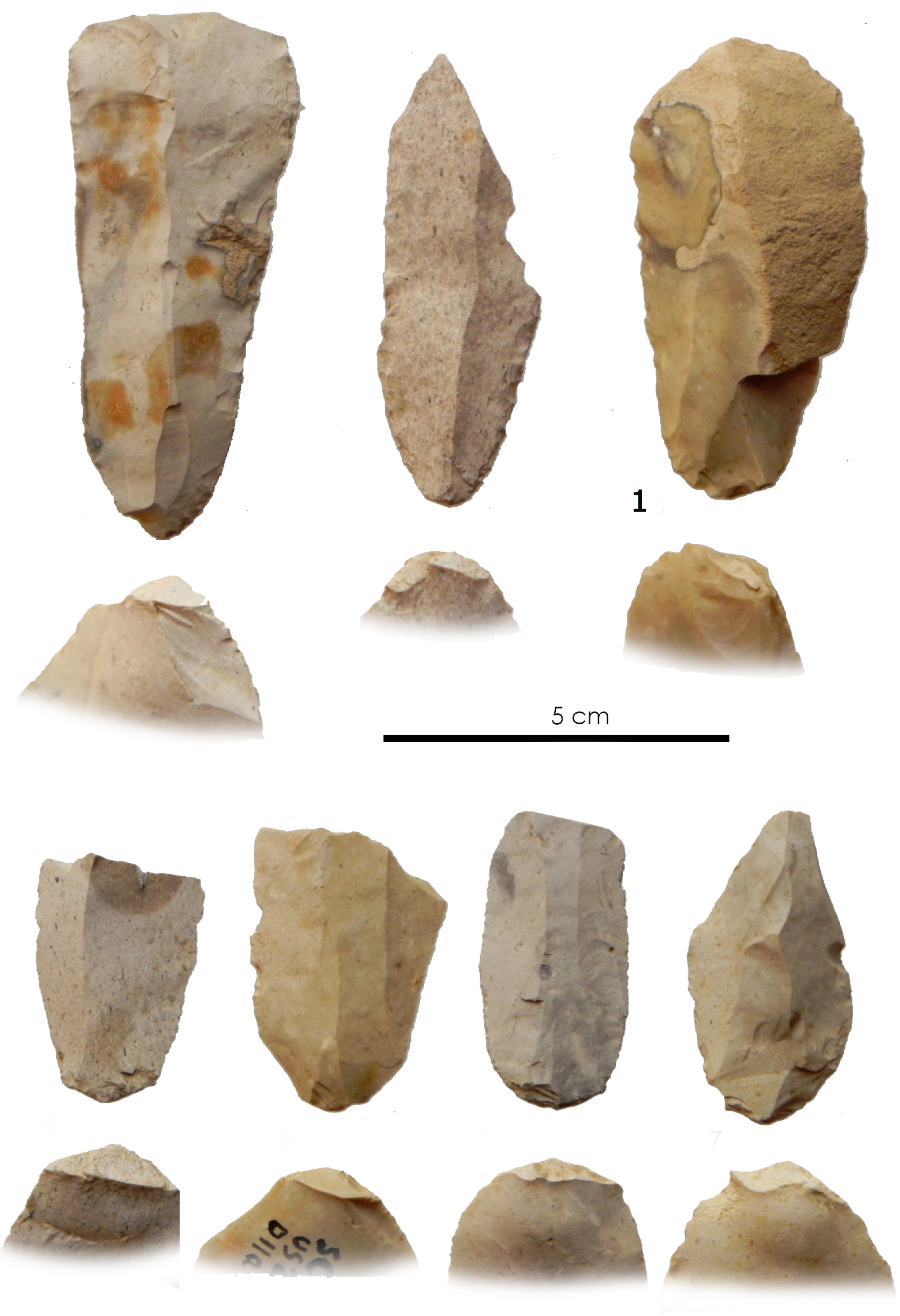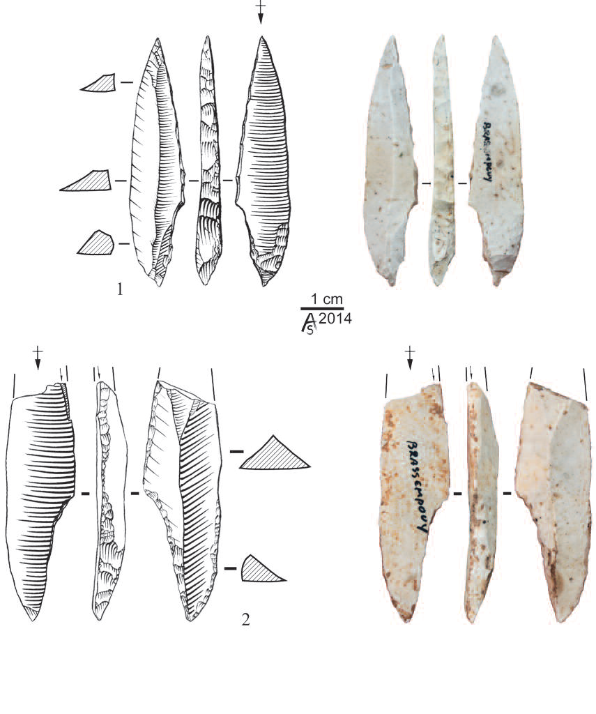 Le Laborien est longtemps demeuré fantomatique sur le versant nord des Pyrénées. À la lumière des travaux menés récemment en Aquitaine48, on peut penser qu’il s’agit ici aussi d’une sous-évaluation ou d’un hiatus documentaire. En effet, la révision de séries aziliennes49 a souligné la présence d’éléments caractéristiques du Laborien mélangés au sein de plusieurs séquences aziliennes. Cette diagnose est fondée notamment sur la présence de pointes de Malaurie et d’un changement technique dans la composante laminaire, en rupture avec l’Azilien récent nord-pyrénéen. Le Laborien est ainsi documenté en Haute-Garonne à Gouërris et sur le site de Buholoup50.