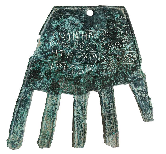 Nous savons maintenant que la langue des Vascons était un ancêtre de la langue basque, une autre composante de cette diversité linguistique antérieure aux Romains. Le grec ancien avait plusieurs dialectes, mais tous les dialectes grecs modernes viennent d’un unique dialecte unifié appelé koinê (« commun » en grec) remontant du IIIe siècle av. J.-C. au VIe siècle de notre ère, à l’exception du tsakonien de Sparte. Le grec a une longue histoire écrite et, depuis la découverte de la Main d’Irulegi, la famille linguistique du basque en aura aussi une.